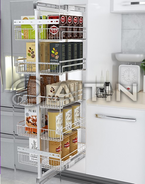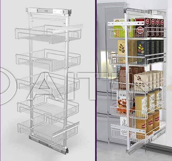 دقت کنید که همه مواد غذایی در ردیف های پشت سرهم و مرتب چیده می شوند و با باز کردن درب سوپری این محصول به طور کامل از جای خود خارج شده و دسترسی همه جانبه ای در اختیار ما قرار می دهد. در خرید این محصول به ارتفاع محل نصب و یونیت سبدهای سوپری وسط آیتین کمک می کند وسایل خود را تا 50 کیلو گرم را در حداقل جا قرار دهید. سبد سوپری وسط آیتین 5 طبقه به آسانی در محل نصب و تراز می گردد. درب کابینت روی آن نصب می شود که موجب هماهنگی با محل استفاده می شود. همچنین ارتفاع و فاصله بین طبقات بنابر سلیقه شما و کارایی شان قابل تنظیم است.آن توجه داشته باشید.